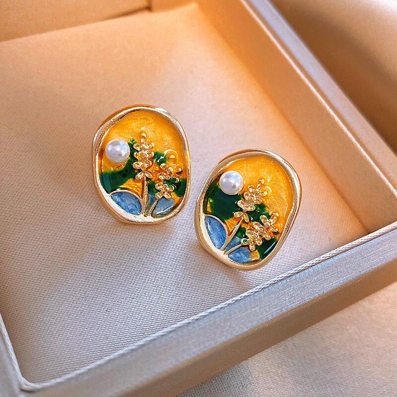 “The vintage floral enamel studs are my absolute favorite. The pastel detailing and pearl accents look so artistic and soft.”