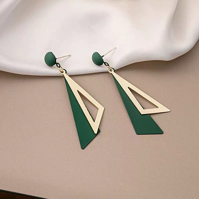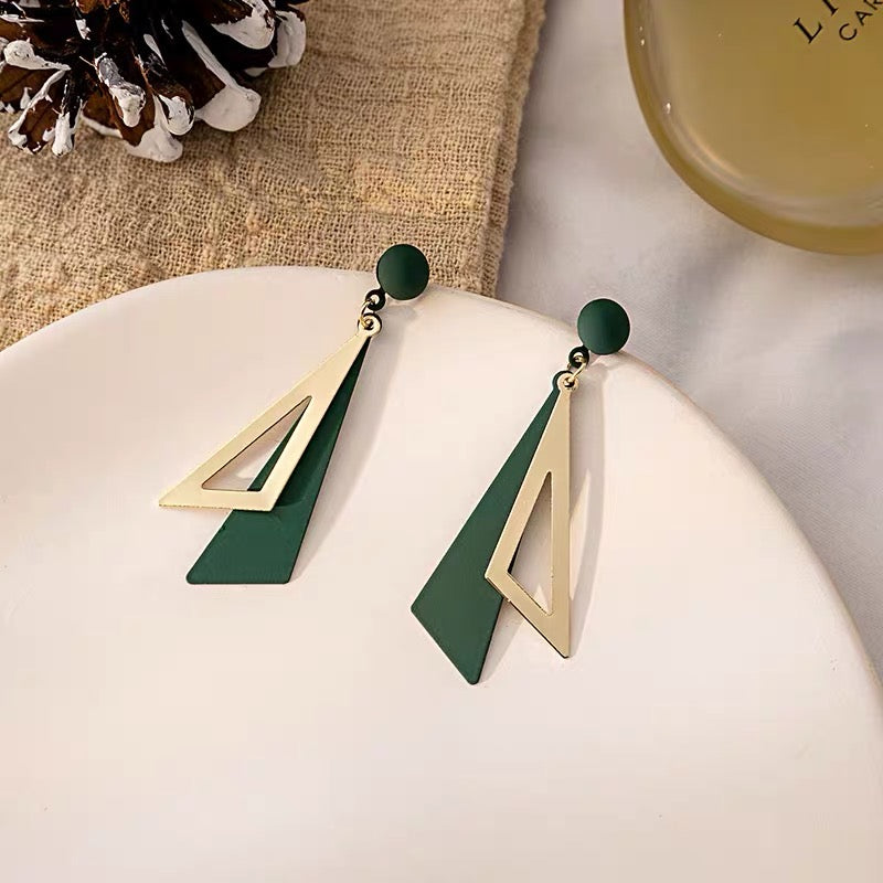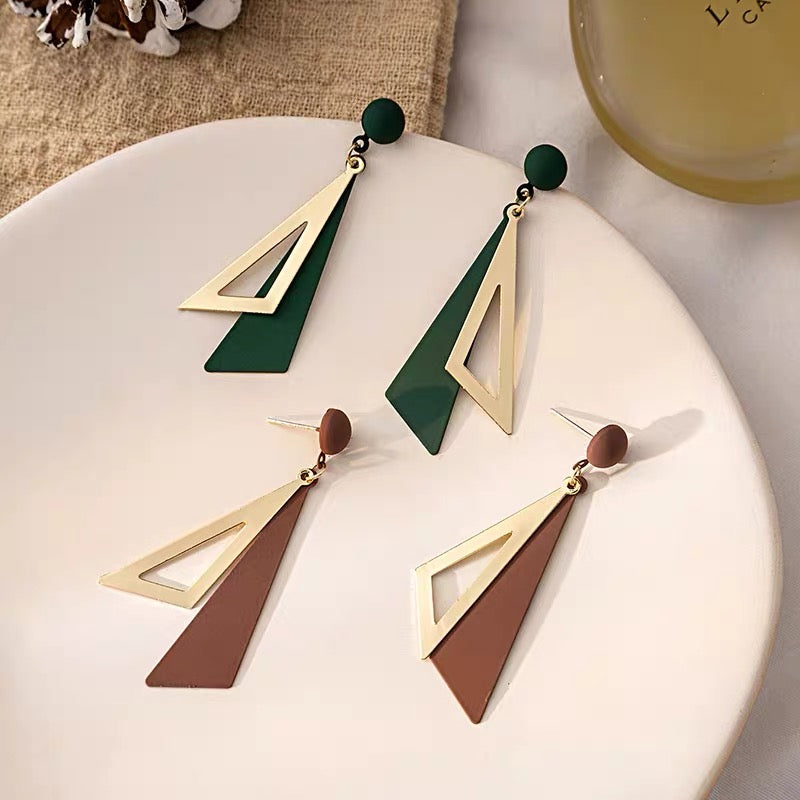 Sleek, lightweight, and boldly geometric, the Avant-Linea Earrings blend modern minimalism with a touch of European artistic flair. Their clean triangular silhouettes and refined metal accents create a statement look that feels both contemporary and effortlessly chic.